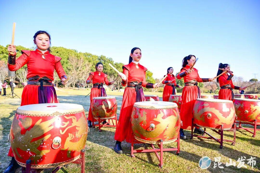 一声鼓——一马当先,开新局!二声鼓——万马奔腾,共奋进!三声鼓——跃马扬鞭,勇争先!四声鼓——骏马奋蹄,惠万家!五声鼓——马上有喜,共幸福!六声鼓——马不停蹄,续华章!上午9时30分,随着六槌振奋人心的鼓声擂动,由机关单位、企业团体、台商台胞、亲子家庭等不同群体组成的千人健步行队伍有序出发。参与者们精神抖擞、步履矫健,在风景优美的步道上阔步前行。大家一边欣赏沿途美景和特色艺匠表演,一边在打卡点位拍照留念,欢声笑语与冬日暖阳交织,携手前行的身影构成一道全民参与、昂扬奋进的流动城市风景线。途中设置的能量补给站、创意打卡点等,不仅为参与者提供全方位贴心服务,更将昆山的城市发展成果、文化底蕴与健身理念深度融合。