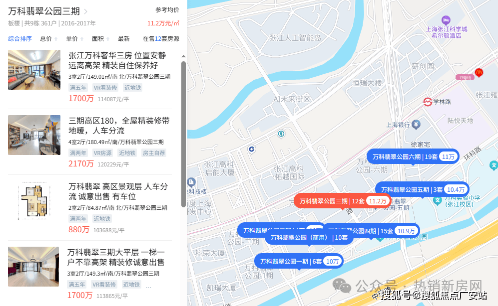 说这话是有依据的,万科翡翠公园就是一个典型案例,被张江园区包围,是张江高知人群改善置业的香饽饽,你再看一下它现在的价格: